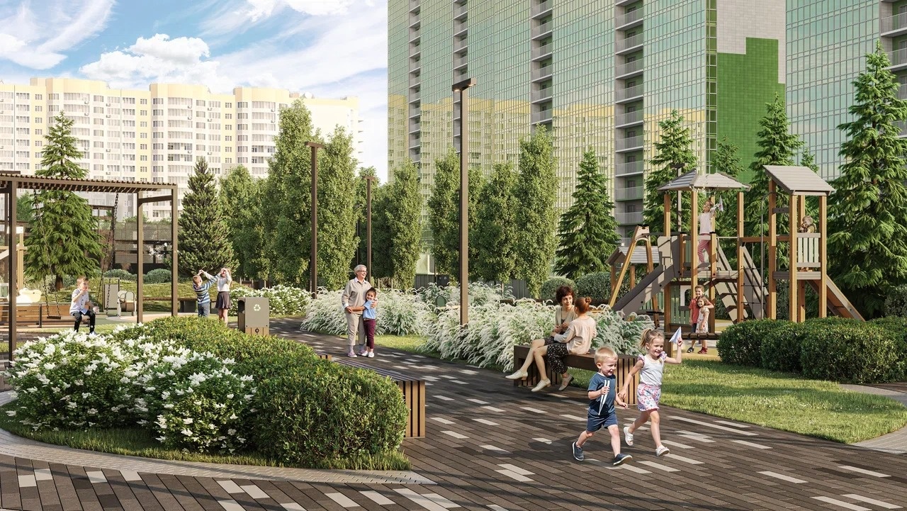 Волейбольная и баскетбольная площадки, профессиональный скейтпарк и зона воркаут порадуют любителей спортивного образа жизни.