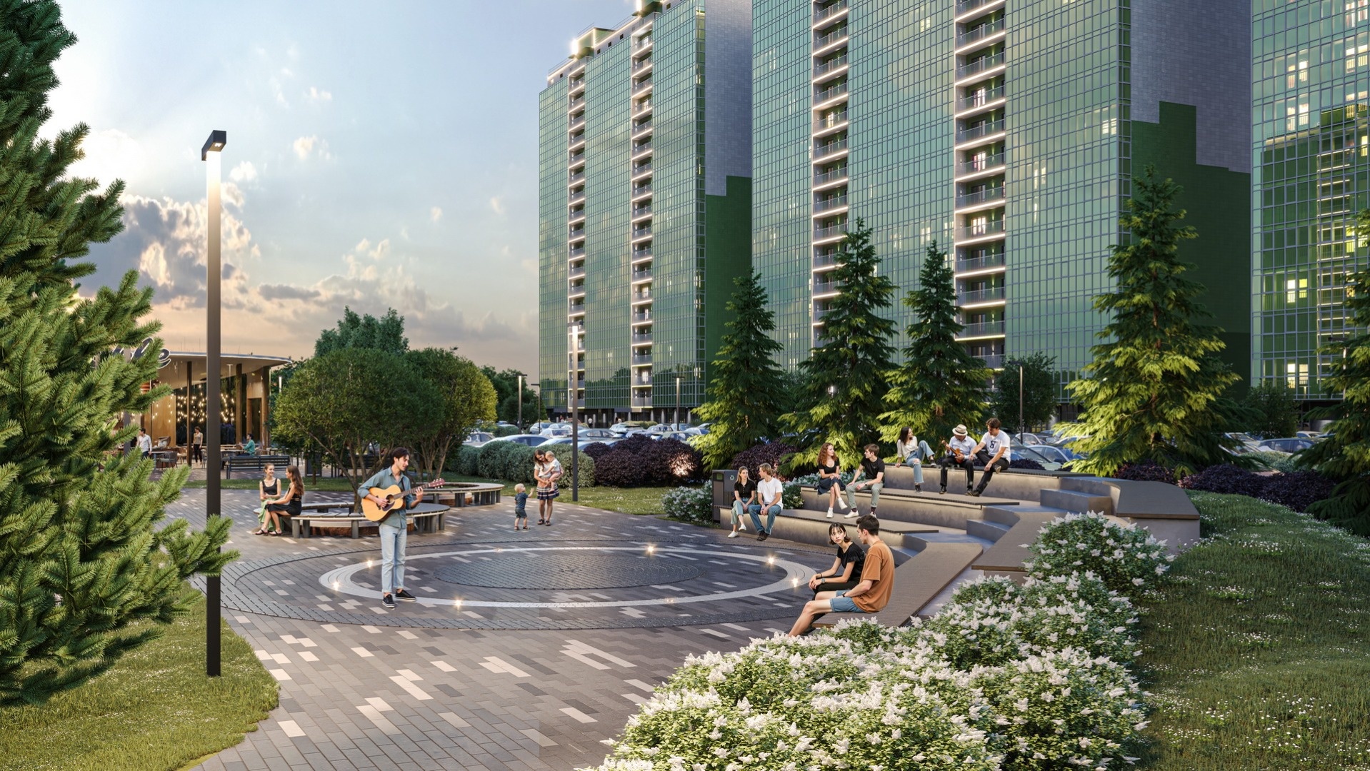 В сердце аллеи предусмотрено уютное кафе, амфитеатр для проведения мероприятий и укрепления добрососедских отношений.